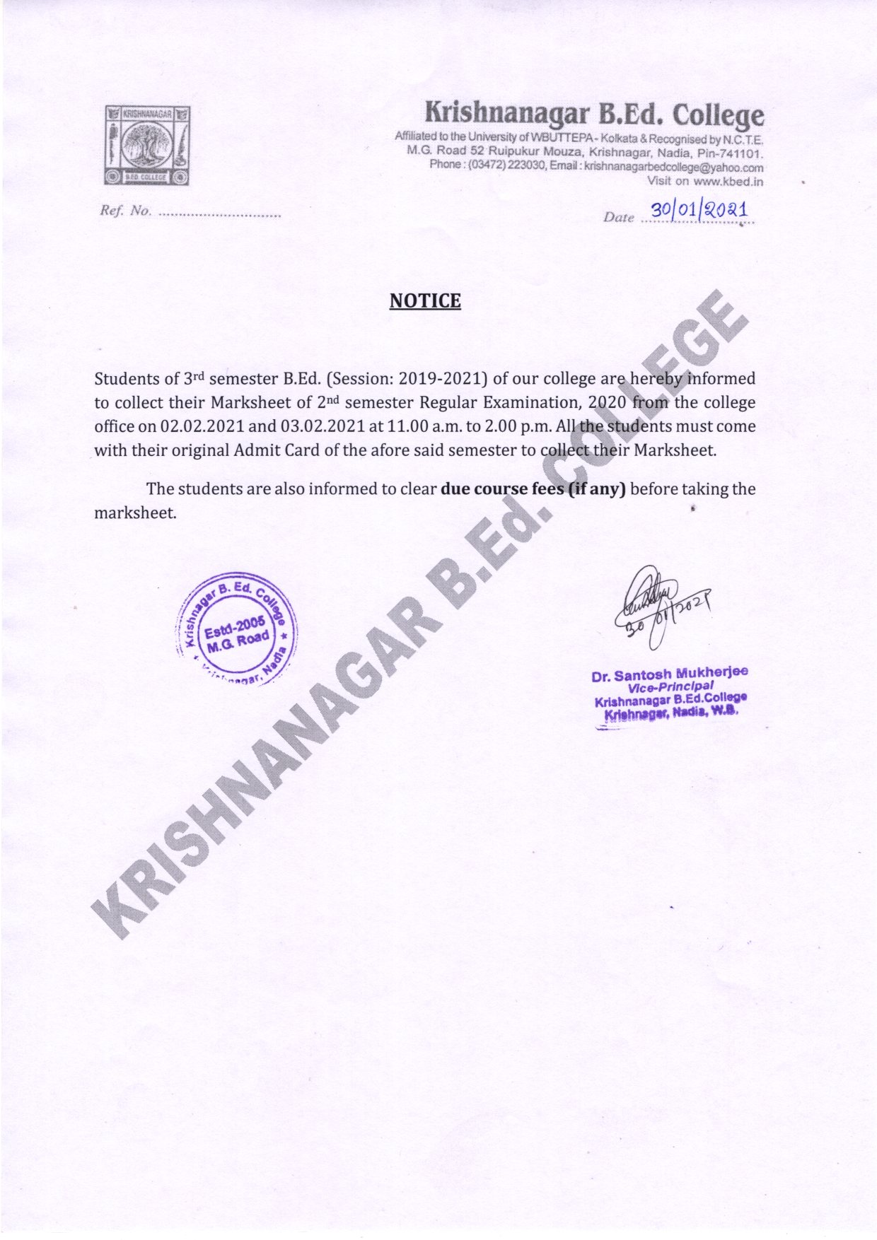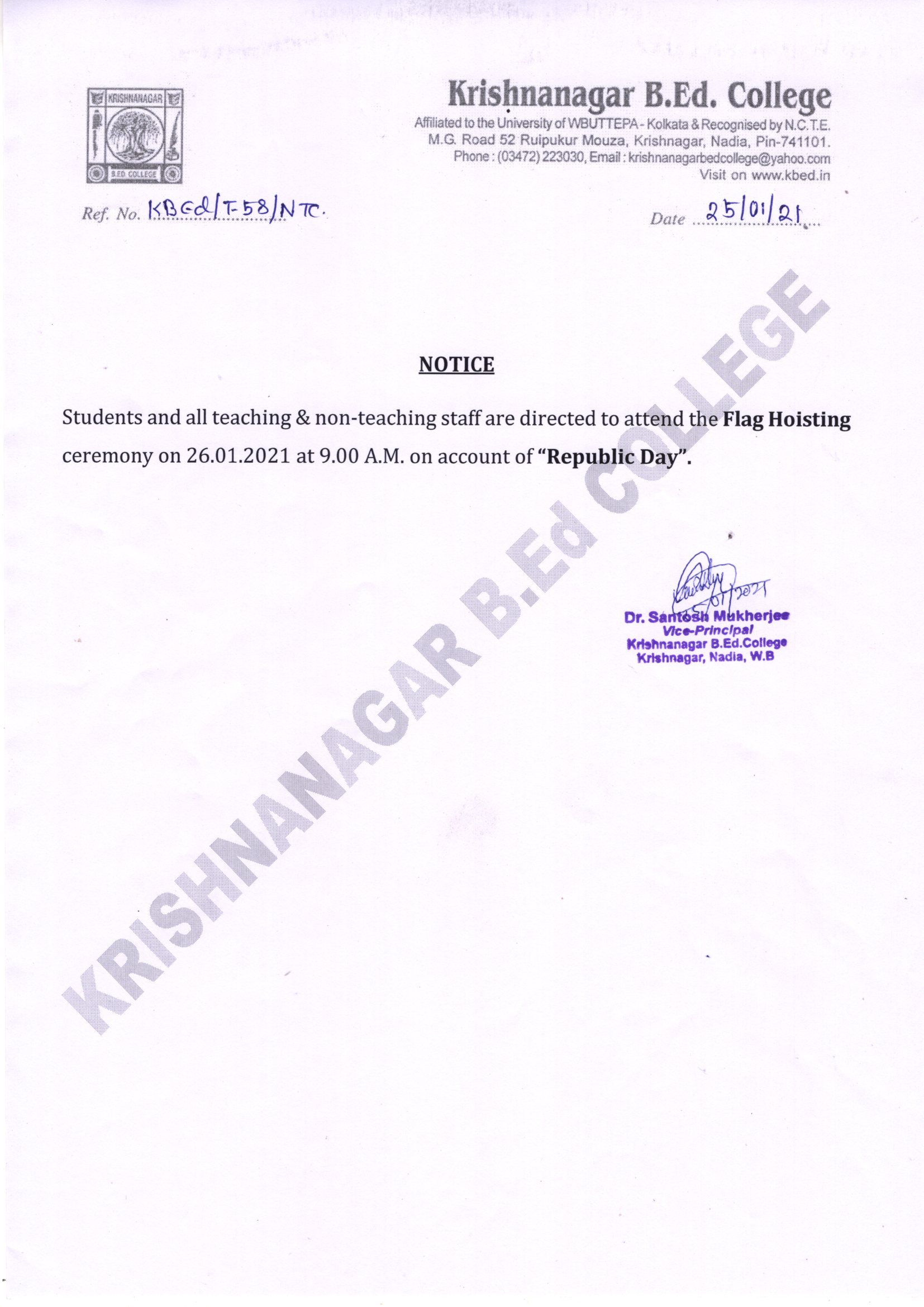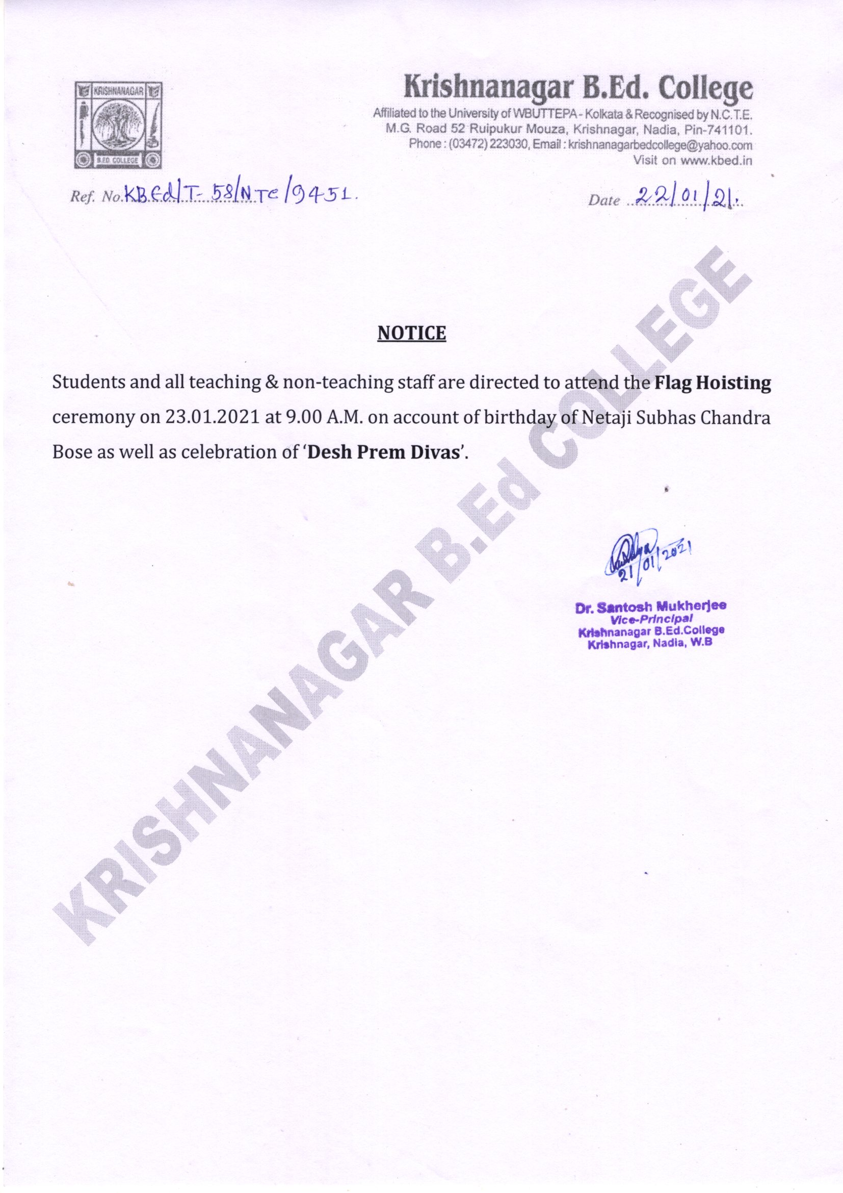 the first self-finance Bachelor of Education college in the Nadia district. It is affiliated to the University of Kalyani and recognized by