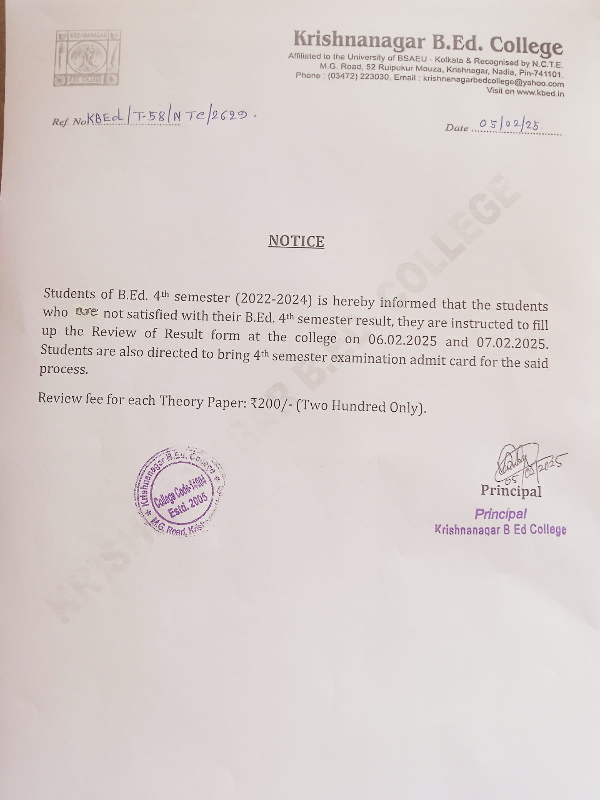 named as “Krishnanagar B.Ed College” on 4th August, 2005. The college is managed and run by the “Bibhuti Bhusan Bandapadhya Philanthropic